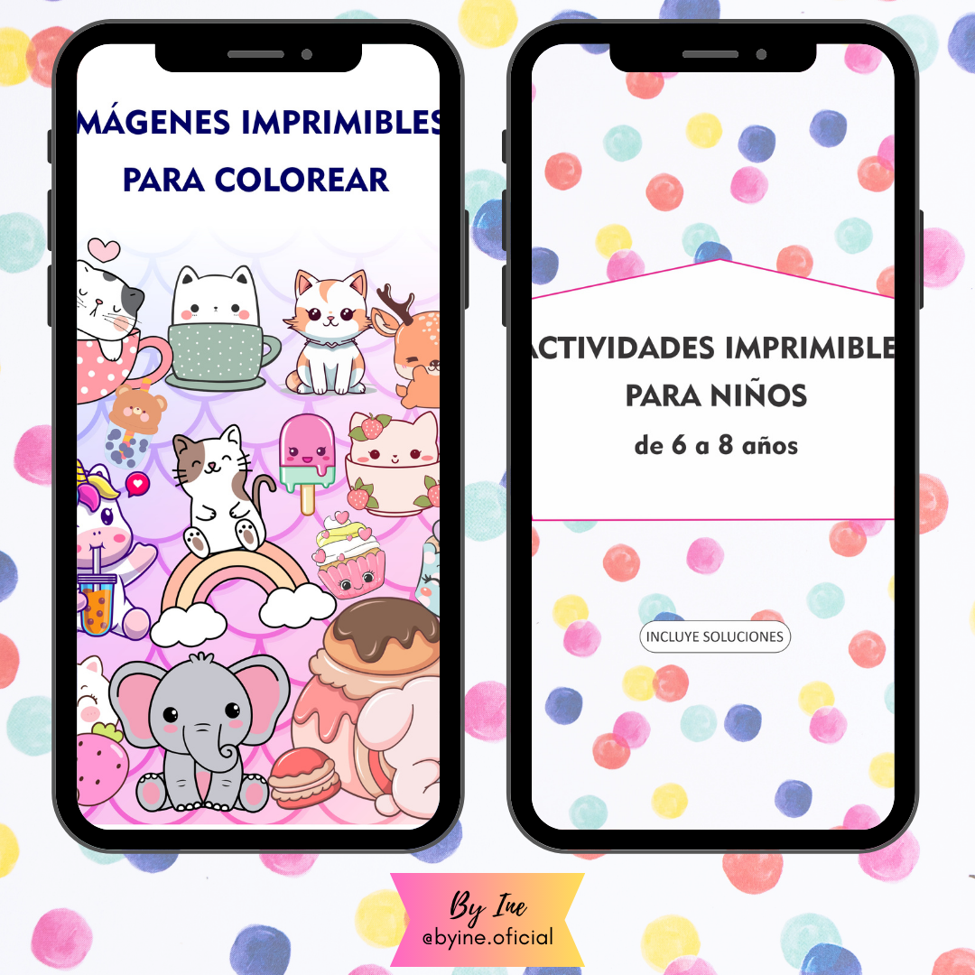 Sumérgete en el adorable mundo Kawaii y actividades con nuestros imprimibles especiales. Estos archivos PDF contienen 14 páginas imprimibles en tamaño A4, con 42 imágenes para colorear y 14 páginas con 18 diferentes actividades.